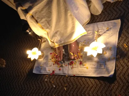 While I sat with my eyes closed, I saw myself getting closer to Mohanji’s feet and just through gestures, I showed my inclination to do Guru Paada Puja, to which Mohanji smiled, and I continued.
