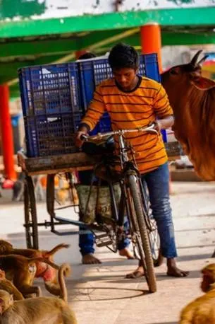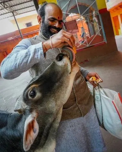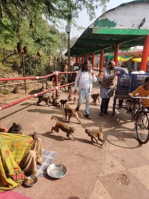 We continued on our way and eventually completed the parikrama. We lost track of time amidst the grand festival of feeding. A mere parikrama and temple visits became a full-fledged interspecies celebration with sadhus, beggars, children and other beings (monkeys, cows, dogs, goats and birds) participating in the festivities, enjoying in unison the food being served to them. In Mohanji’s words, “Feeding the children of Mother Earth is the best way to visit temples and pay respect to the deities.”
