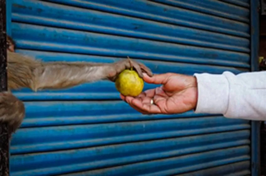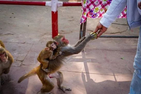 As we started the parikrama, we fed every being in sight generously – be it a dog, cat, goat, cow, monkey or a human being. We had bags filled with biscuits and bananas. Our local hosts walked with us and arranged the food items to be distributed. They told us that monkeys loved raw brinjals (eggplant). We bought a few kilograms of brinjals from a nearby vendor and gave them to the monkeys. Soon, demand outstripped supply, and we had to engage another push-cart vendor. Given the rate of our distribution, this vendor joined our parikrama group and walked with us all through the path, supplying brinjals as and when needed!