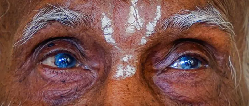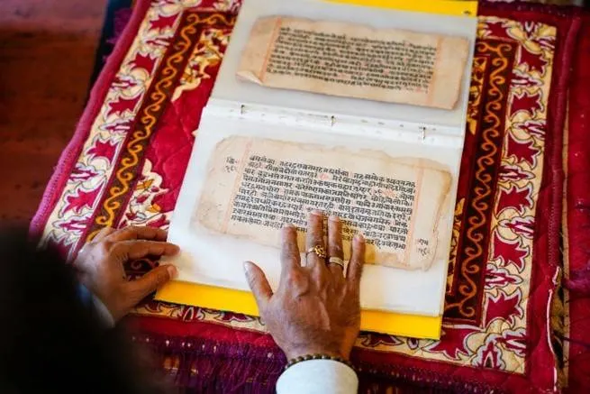 The saint fetched the manuscript from his cupboard and laid it on his table, allowing us to touch the well-preserved pages (encased in special sleeves to protect them from decay). He became deeply engrossed, telling us stories of Lord Rama and Lord Hanumanji. Mohanji gestured for us to click pictures of him speaking and particularly to take close-ups of his face. His blue eyes glazed over, becoming almost transparent as he continued talking.