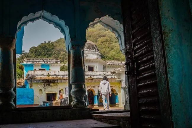 The following morning brought our first glimpse of the holy Mandakini flowing below our cottages, which were situated on an elevated plateau. The surreal early morning setting of a fading fog permeated with chants from nearby ashrams, the gushing sounds of a flowing river, and the occasional chatter of the people bathing in the river created a serene temple town atmosphere that set the mood for the day ahead. After breakfast, we set out with great anticipation and excitement for a parikrama of the holy Kamadgiri mountain and drove to the starting point, the Shri Kamtanath temple. After offering our prayers, we started our parikrama at 9.45 am and expected to complete the well-paved and largely flat five km path at a very relaxed pace within 90 minutes and return for lunch.