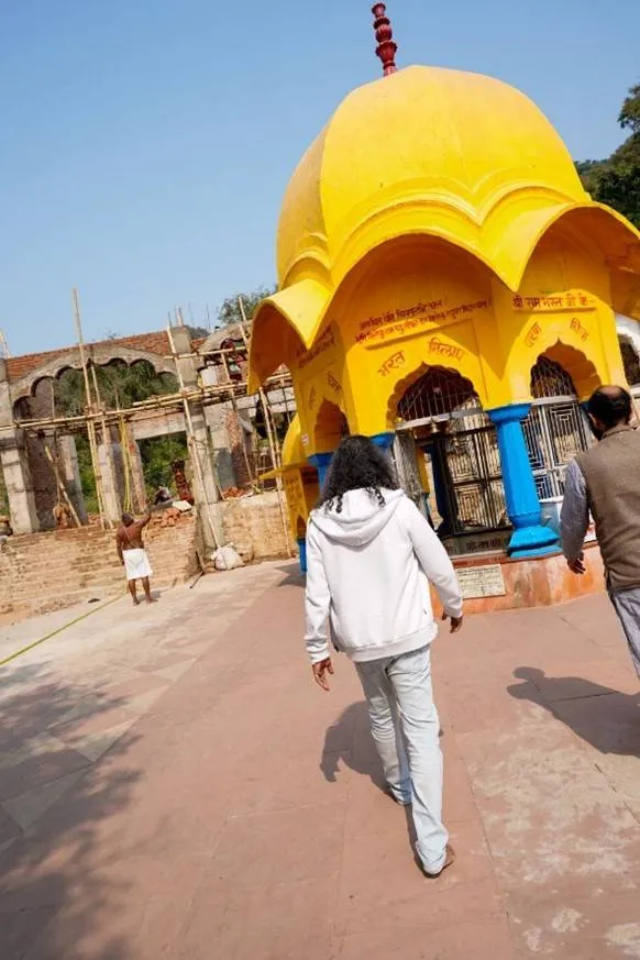 Our next stop was at another non-descript-looking temple. The name board ‘Bharat Milap Mandir’ informed about its significance. This is where the younger brother of Lord Rama, Bharata, met his elder brother during his exile and requested him to return as Ayodhya’s ruler, discontinuing his fourteen-year exile. Being under renovation, we couldn’t see all the shrines.