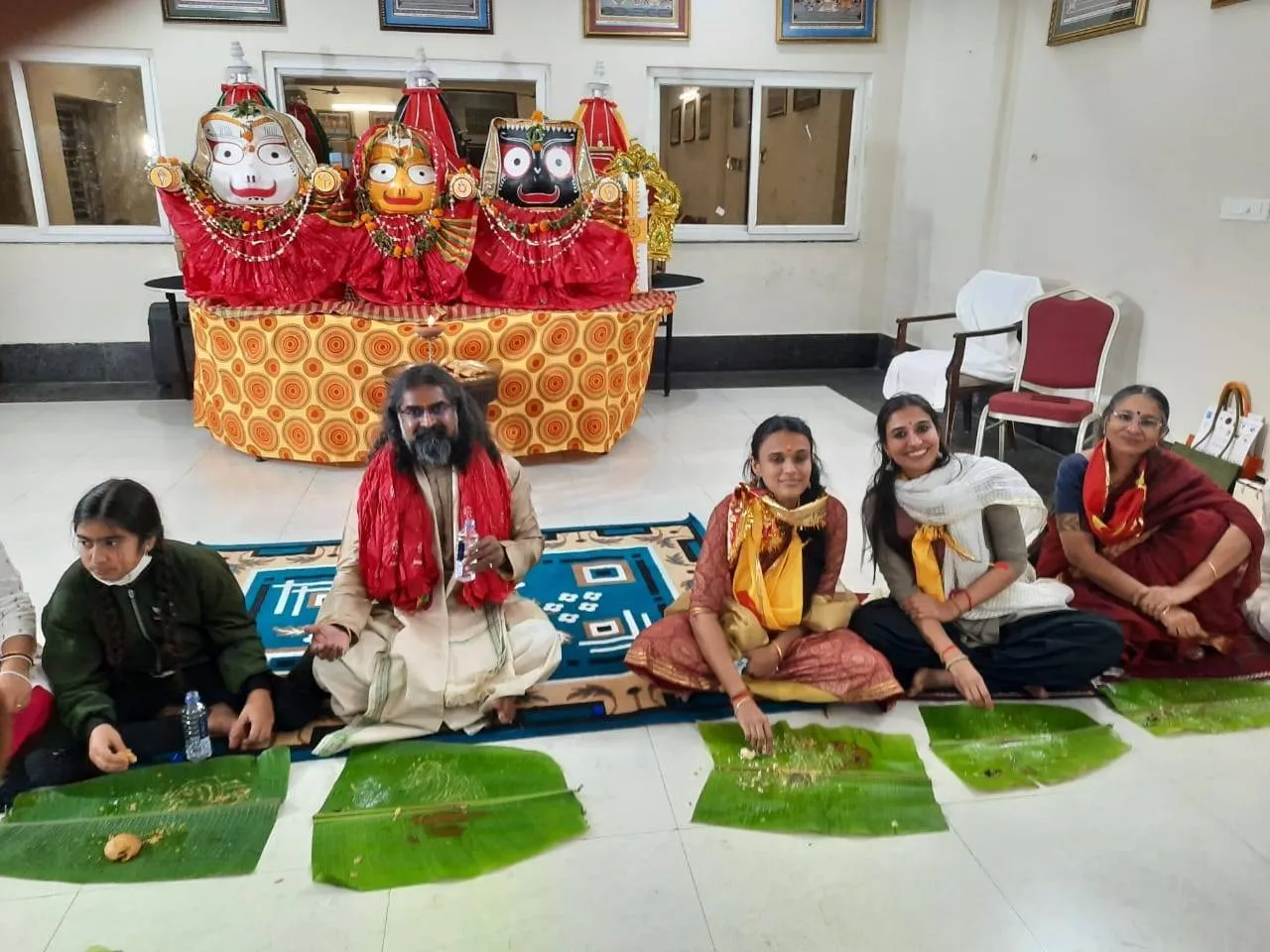 Radha: In the evening, we had a satsang. After the satsang, we went to the temple of Jagannath. Mohanji asked all of us to sport the flag around our necks while going to the temple that evening. We took a short van ride to reach the temple.