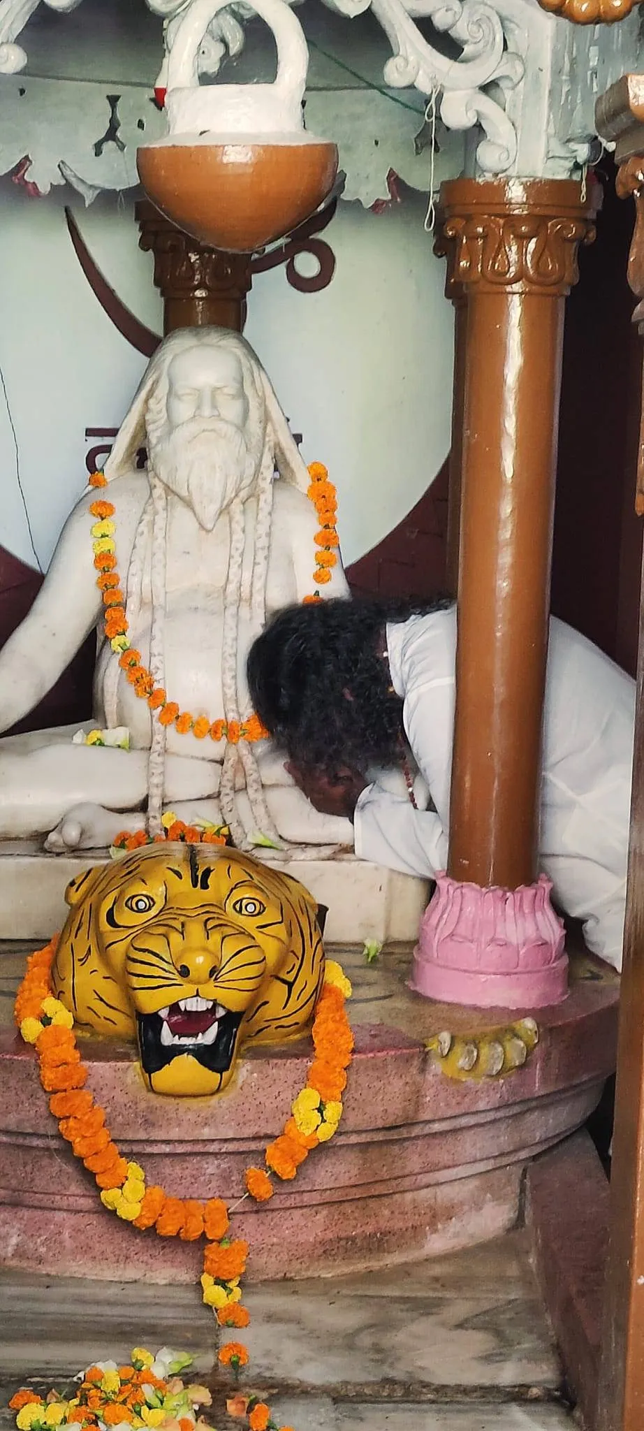 Sathya: When we entered, the priest was struggling with an object. One of the eyes of Baidyanath had fallen off, and the priest was trying to fix it.