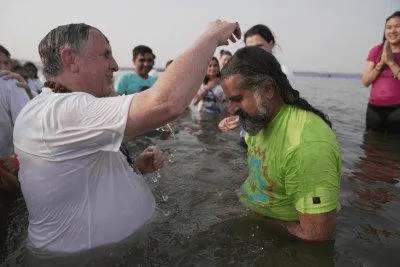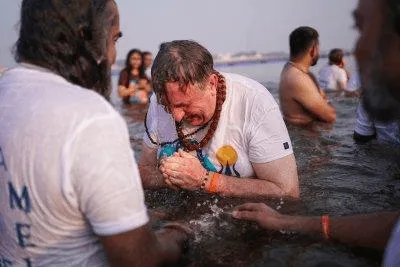 I was fortunate to enter into the divine water of Mother with Mohanji on three separate occasions when we had the blessing of being immersed by Mohanji in Mother Ganga. I asked Mohanji in Satsang what happens when this takes place. Mohanji declined to answer and asked in return what I felt was happening. Mohanji had repeatedly urged us to experience and feel whilst at the Kumbh and not rationalise or think. ‘It felt as if I was being baptised’, I responded. I think this exchange was recorded on video, and others have captured the experience of dipping with Mohanji beautifully, so I will not add anything further.
