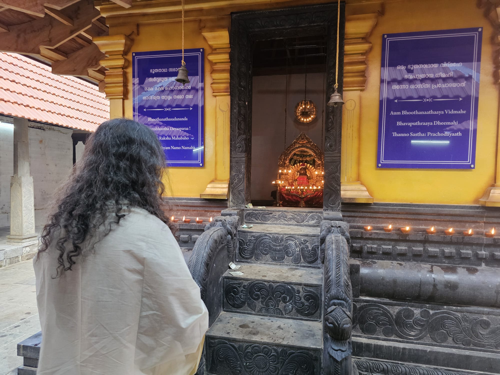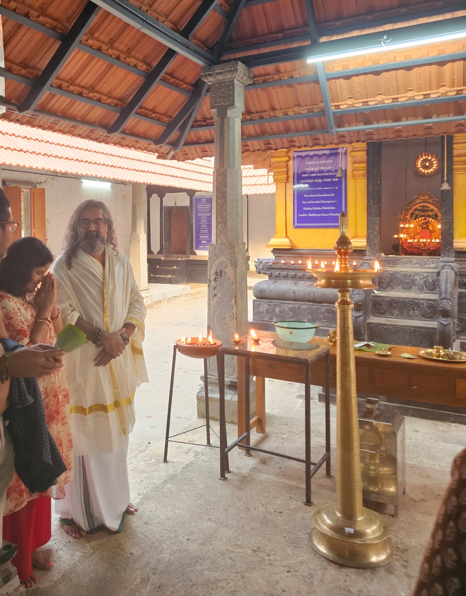 After some time, we left for the temple. This was my first visit to the Dharma Sastha temple, which was consecrated earlier this year in May. I hadn’t been able to attend the consecration then. Now, my first visit became even more significant—I was going there along with Mohanji.