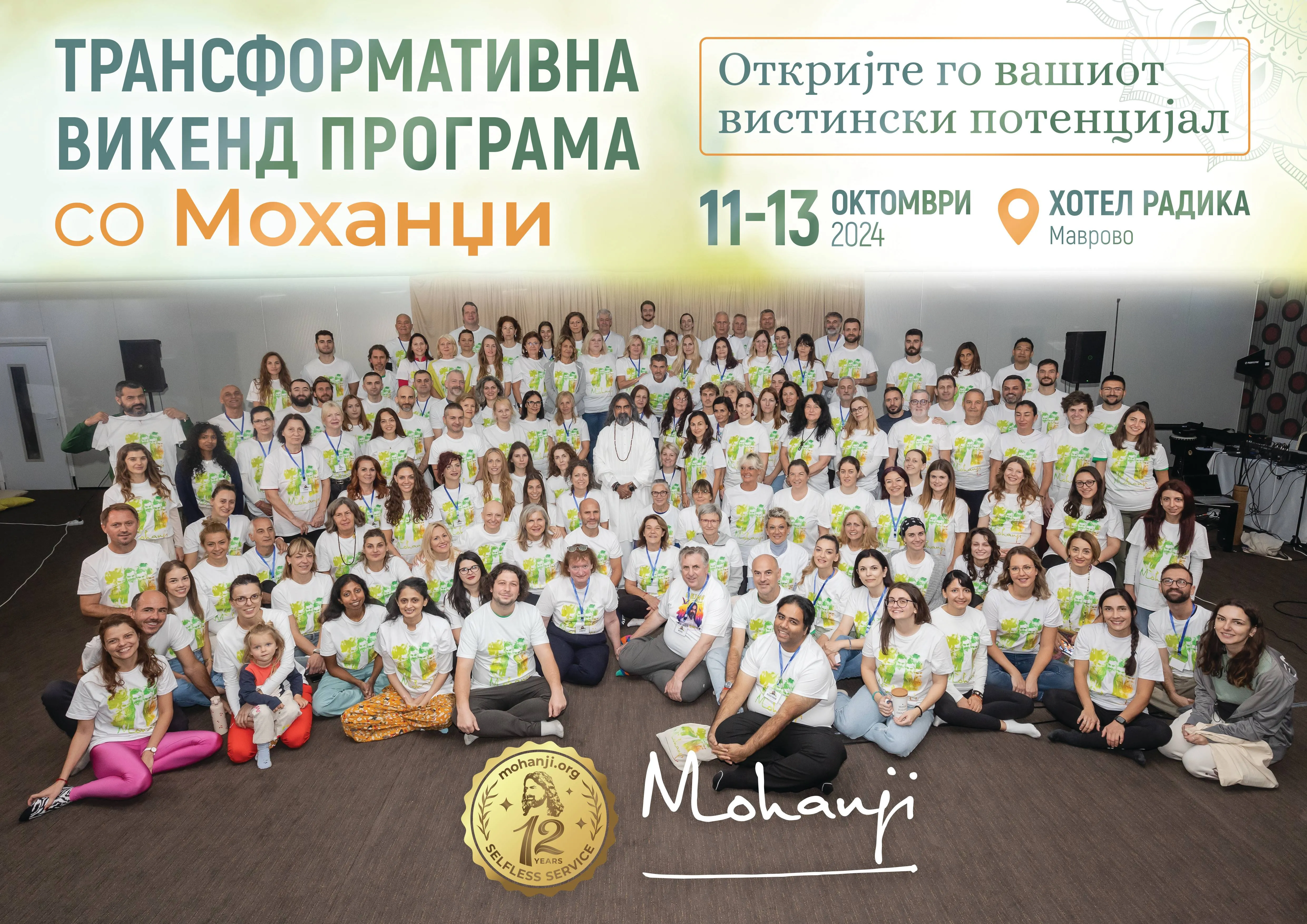 Saturday the 12th arrived, and satsang, blessings of items, and Shaktipat were planned for the morning and early afternoon after the initial group photograph. There were over 150 participants drawn from around the globe and in multiple languages, which meant that organizing a group photo required a professional qualification in planning, language skills, and logistics.