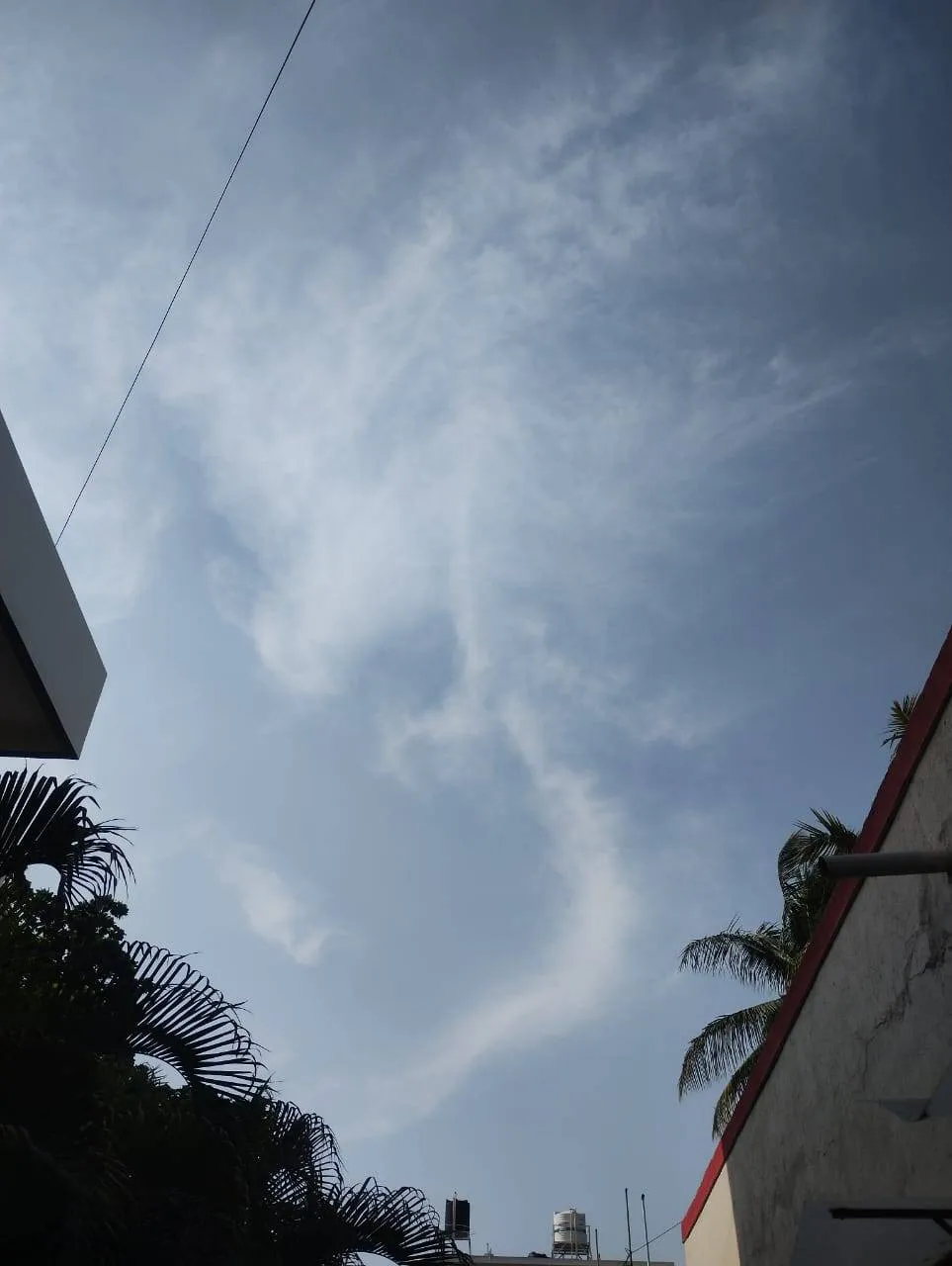 The video was about 47 minutes long. I was almost halfway through the video, and my heart felt expanded, and I felt much lighter. Then, I felt like I should take a stroll in my backyard before resuming the video. As I was walking in my backyard with my sibling, we both spotted a gargantuan sign formed by clouds in the sky. Without any confusion we both mutually perceived it to be an OM symbol. Hence, the picture was taken immediately. This is what we both saw in the sky that day on May 28th this year.